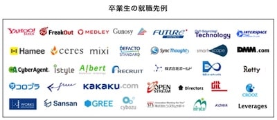 卒業生の就職先も、『YAHOO!JAPAN』、『CyberAgent』など、人気企業がたくさんあります。